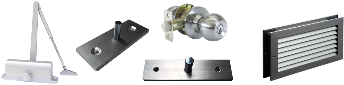 Las puertas de acceso pueden incluir cierrapuertas, barra antipánico horizontal y vertical, cerradura para exterior e interior tipo bola y residencial, rejilla para ventilación, placa superior e inferior reforzada para abatimiento, entre otros.