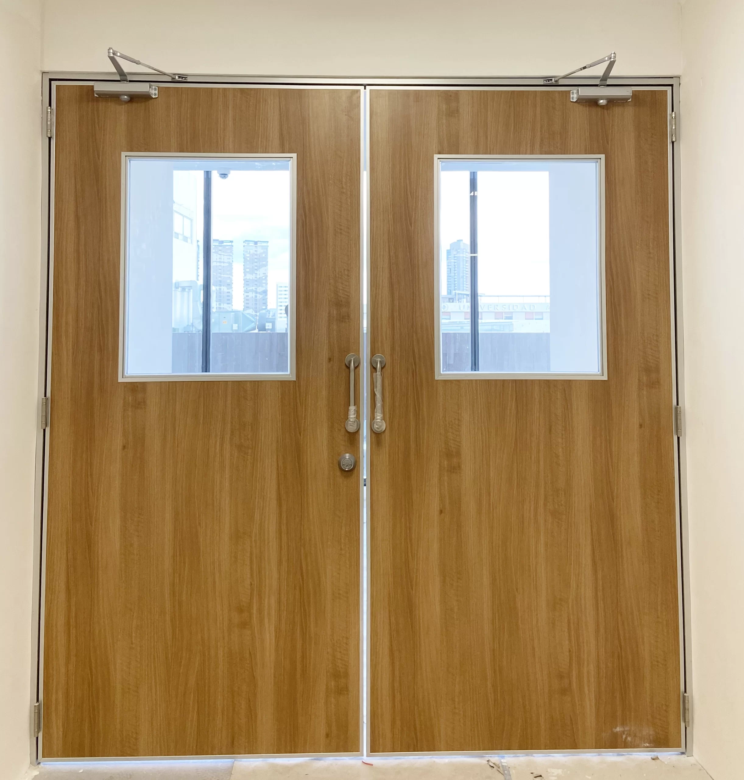 Las puertas de acceso pueden incluir cierrapuertas, barra antipánico horizontal y vertical, cerradura para exterior e interior tipo bola y residencial, rejilla para ventilación, placa superior e inferior reforzada para abatimiento, entre otros.